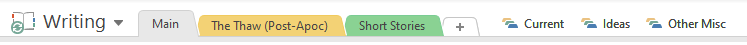 My first tip would be to keep your notes organised in a central place that is accessible everywhere, as you want to be able to find that idea, or fragment, or name at as little notice as possible. To that end I employ Microsoft OneNote for this task – I have a master Writing notebook which houses all my ideas – projects get their own sections, with subsections and subpages making up the structure under that.
