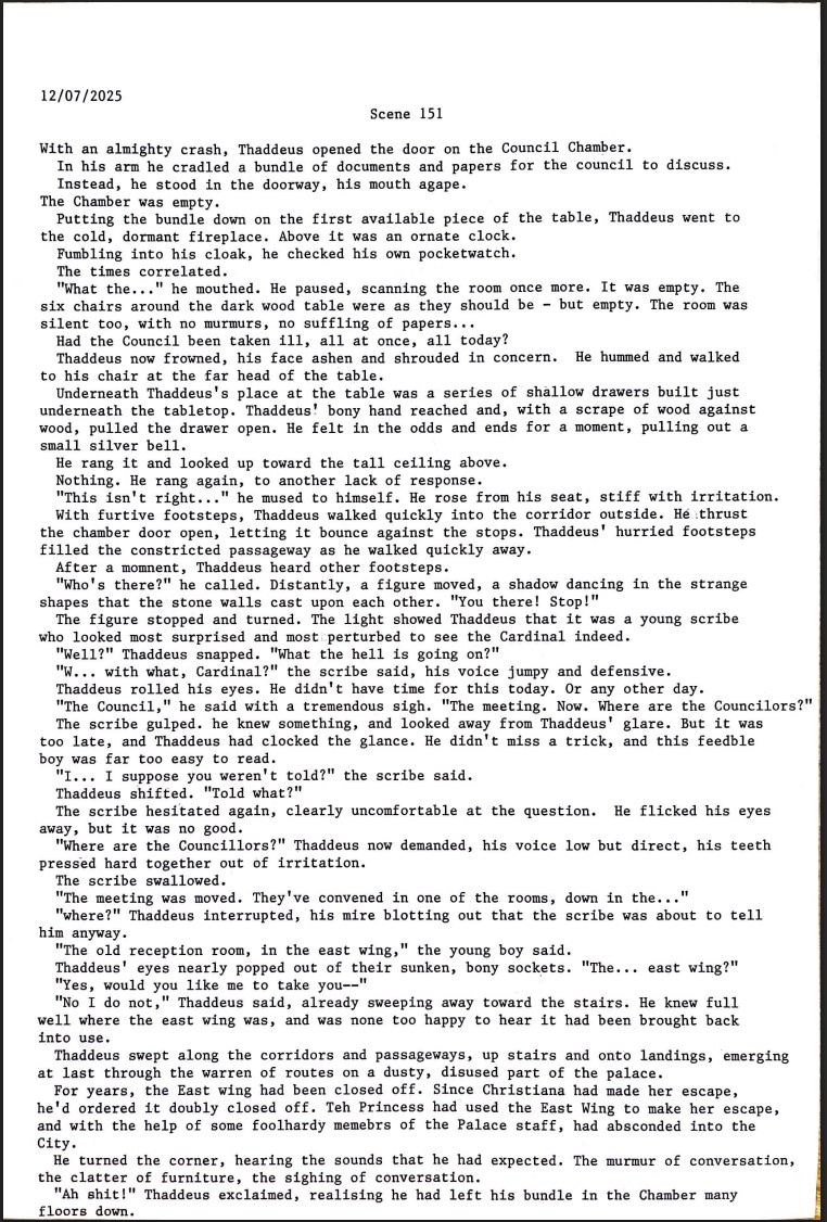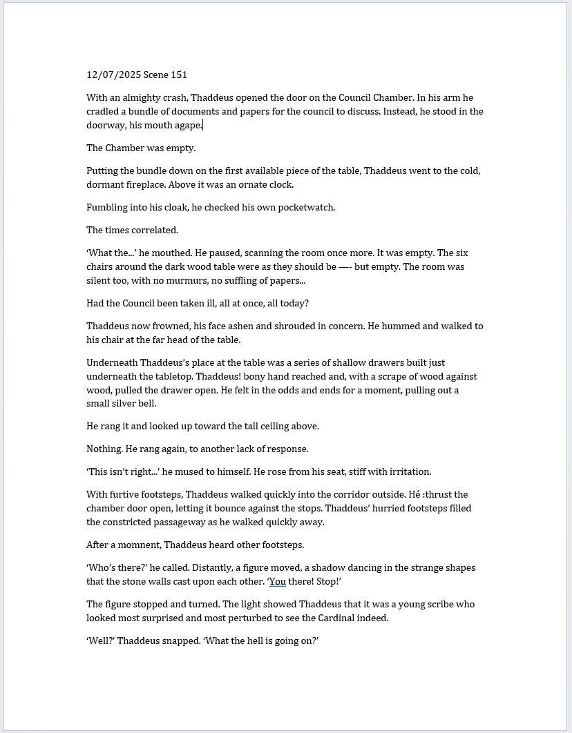 I explicitly told ChatGPT not to correct spelling or grammar errors, as that’s work for my first proper edit later. I didn’t want it guessing at my intent or rewriting my prose. All I needed was a cleaner, more convenient format for integrating the text into my main manuscript.